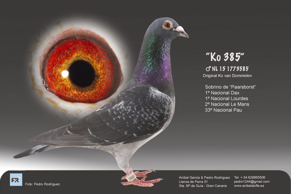 Descripción Pedigrí Padres NL 15 1773585 Ko 385Nieto de la pareja base de Van Dommelen Ultime x Casje Vermeulen. Padres