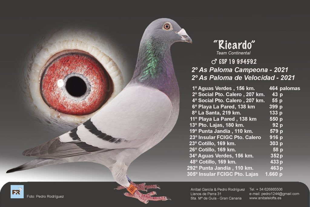 Descripción Pedigrí Padres “Ricardo” FCC 19 934592 23ºFederación FCIGC Pto Calero 916p305º Federación Pto Lajas 1660 p1º Aguas Verdes 464p2º