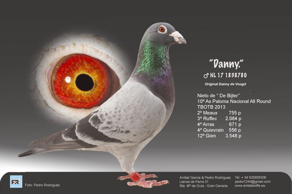 Descripción Pedigrí Padres «Danny» NL 17 1838780 Nieto de:10. Nat, ACE Pigeon All-Round TBOTB’13—-«Topbreeder»—-3. Ruffec 2084 d3. Meaux 755 d3.